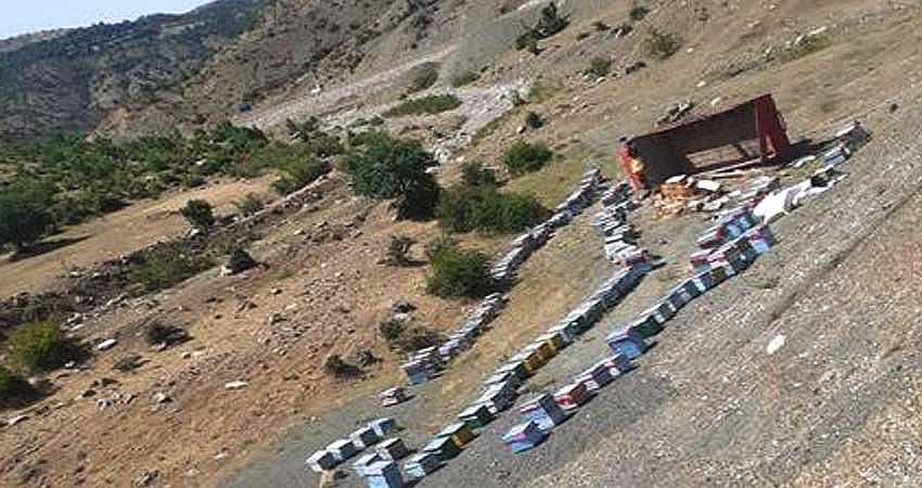 | Bingöl-Diyarbakır karayolunda arı yüklü kamyon devrildi, 2 kişi yaralandı. | ||